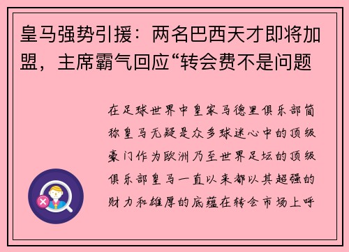 皇家马德里(RealMadrid)一向以其强大的阵容和无与伦比的球星储备而闻名。就在即将对阵塞尔塔的西甲联赛焦点战前,皇家马德里主帅意外宣布伊斯科(Isco)将无缘此场关键比赛。这一消息无疑让许多皇家马德里的忠实球迷感到震惊和失望。 伊斯科,作为一名才华横溢的中场球员,他的技术能力和创造力一直是皇家马德里中场的一个重要组成部分。虽然近年来他在球队的地位有所下降,但他在关键比赛中的表现依然不容忽视。...