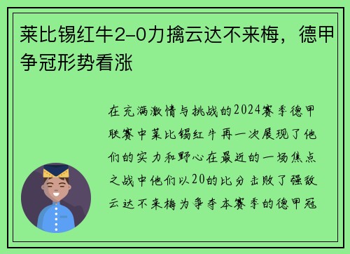 在刚刚结束的德甲联赛中,汉堡队以2:1的比分客场战胜了科隆队。这场胜利不仅为汉堡队赢得了宝贵的三分,也让他们在保级的道路上迈出了关键的一步。对于汉堡队来说,这场比赛的重要性不言而喻,而他们的表现也的确让球迷和专家们眼前一亮。 汉堡队在本赛季的表现一直备受关注,尤其是在联赛末段,每一场比赛都变得至关重要。尽管球队在赛季初期曾遇到一些困境,但在最近几场比赛中,汉堡队展现出了强大的韧性和求胜欲望。在对阵...