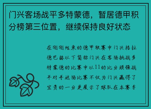 在本赛季的德甲联赛中,柏林赫塔以令人瞩目的表现成功跻身积分榜前列,成为了本赛季中最令人惊喜的球队之一。作为一支曾经在联赛中表现平平的球队,他们的崛起无疑是德甲的一大亮点。柏林赫塔的出色表现不仅源于球员的个人能力,更离不开球队整体战术的革新和执行力的提升。 本赛季,柏林赫塔在多场关键比赛中展现出了顽强的拼搏精神和超凡的比赛智商。球队在进攻端和防守端都表现出了极高的水准。主教练通过一系列的战术调整,让...